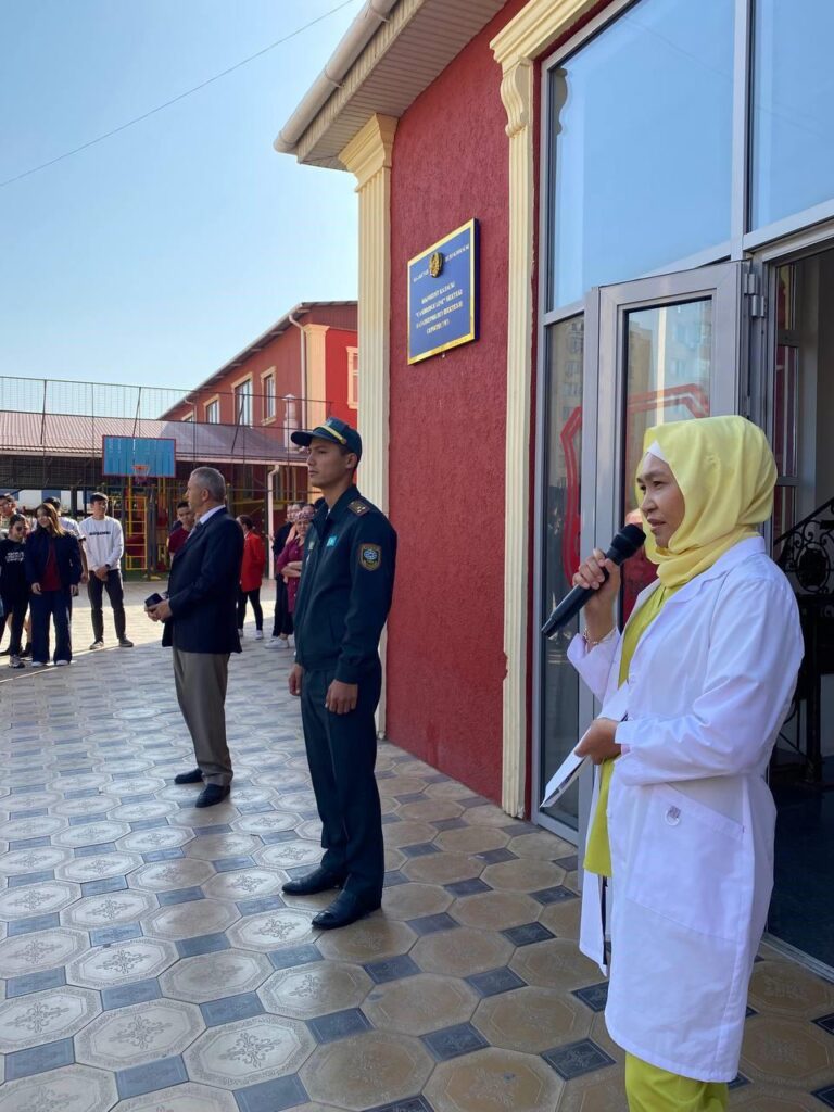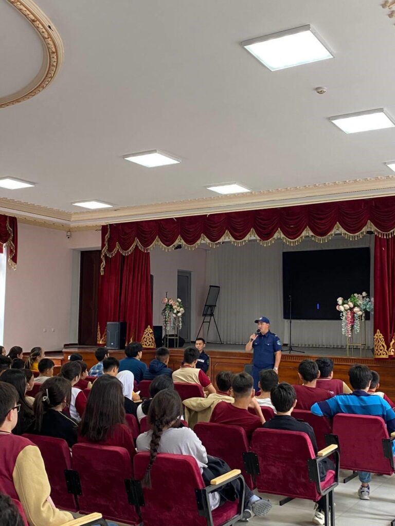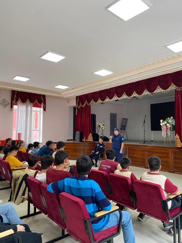 После проведения инспектором разъяснительной работы классным руководителям по профилактическим мерам пожарной безопасности в актовом зале школы, по тревоге всех школьников вывели во двор школы в безопасную зону. Школьникам объяснили, какие меры следует предпринять при чрезвычайных ситуациях, таких как землетрясения, пожары и т. д. Учащиеся получили ответы на актуальные вопросы. В заключение инспектор призвал всех учащихся соблюдать меры технической безопасности. Школьная медсестра объяснила, как оказать первую медицинскую помощь раненым во время чрезвычайных ситуаций.