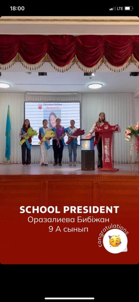 Ф. Тосун — директор школы, в свою очередь, поздравил новоизбранного президента школы и пожелал успехов, сказав, что в предстоящем учебном году он ожидает новых результатов на высшем уровне. Новый президент организации самоуправления Оразалиева Бибижан рассказала всем школьникам, что у них много планов на предстоящий год, пообещав в качестве руководителя внести много новых изменений. В конце мероприятия министры были награждены, а Президент принял присягу перед народом.